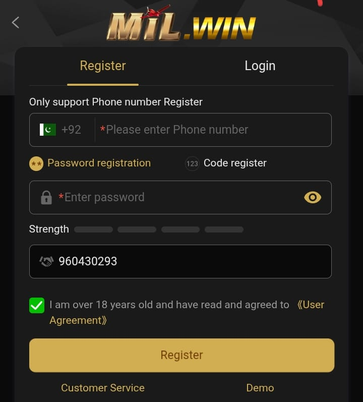 Creating an account on Mill Win Game is quick and simple.